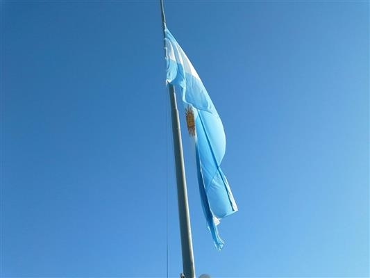 La nueva Bandera Argentina de 8 por 6 metros que reemplaza a la anterior fue bendecida por Monseñor José «Coché» Macin.