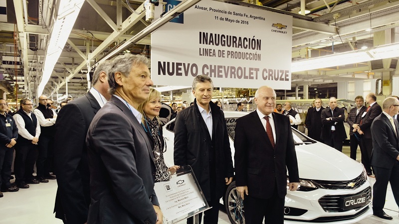 El gobernador de Santa Fe, Miguel Lifschitz, y el presidente de la Nación, Mauricio Macri, inauguraron este miércoles la línea de producción del nuevo Chevrolet Cruze II, que se fabricará a partir de junio en la planta que General Motors posee en la localidad de Alvear.