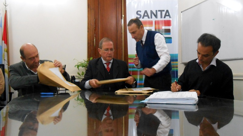 Los ministros de Obras Públicas, Julio Schneider, y de Desarrollo Social, Jorge Alvarez, encabezaron este lunes la apertura de sobres con las ofertas económicas para la construcción de una pista reglamentaria de atletismo y vestuarios en San Javier.