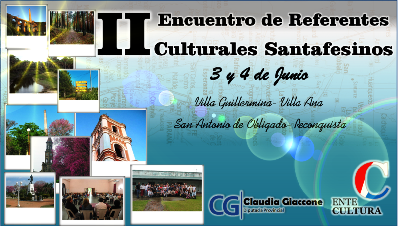 Durante los días 3 y 4 de junio en las localidades de Villa Guillermina, Villa Ana, San Antonio de Obligado y Reconquista se llevará a cabo el “II Encuentro de Referentes Culturales Santafesinos”.