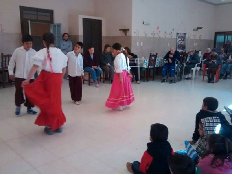 En conmemoración al 206º Aniversario del Primer Gobierno Patrio, los niños del Centro de Acción Familiar (CAF) “Juan Pablo II” compartieron una mañana con los abuelos del Hogar de Adultos Mayores “San José”, a quienes ofrecieron pastelitos y bailes; por su parte, los abuelos brindaron recitados y contaron anécdotas.