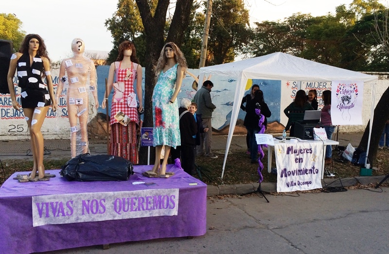 Este año, no hubo marcha ni movilizaciónes, sino montaron un escenario sobre la avenida, con una puesta en escena sobre las diversas maneras de vida de la mujer: trabajadora, ama de casa, profesional, madre.