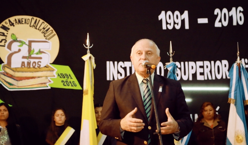 El gobernador de Santa Fe, Miguel Lifschitz, encabezó este viernes los actos conmemorativos del 25° aniversario del Instituto Superior el Profesorado Nº 4 Anexo II “Ángel Cárcano” de Calchaquí. La celebración se realizó en el edificio de la escuela provincial Nº 448 de esa localidad.