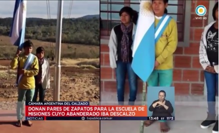 Por la imagen del alumno abanderado que asiste a clases descalzo, la Cámara Argentina del Calzado donó 300 pares a su escuela… Mirá el video…
