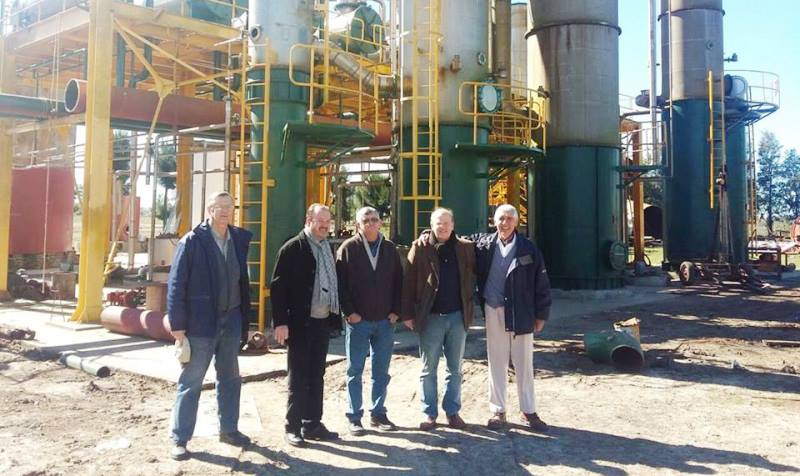 Paduán mostrando la alcoholera al ministro de la producción, Luis Contigiani