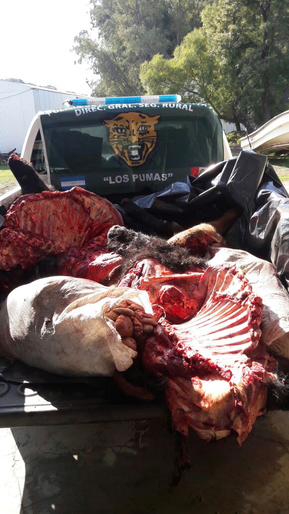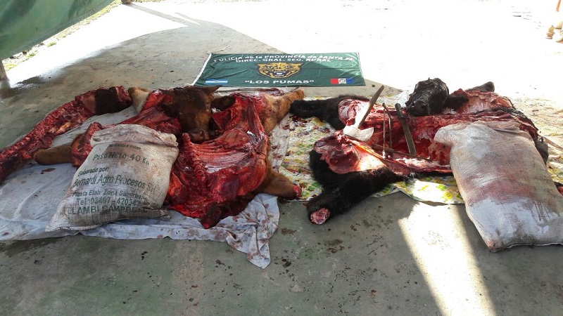 SECCION Nº 14 SAN JAVIER: Personal de esa Dependencia, inició tareas investigativas para dilucidar un hecho de Abigeato, donde una ciudadana oriunda de ese medio, denunció la faltante de dos (02) animales vacunos. Como resultado de un exhaustivo rastrillaje pedestre en las inmediaciones de Colonia Indígena, se divisó en la parte exterior de una vivienda en precarias condiciones y deshabitada, dos semovientes faenados, cubiertos con nylon y un mantel, vísceras esparcidas por el lugar, procediéndose al SECUESTRO de quinientos (500) kg de producto carneo vacuno, una (01) sierra; un (01) machete; una (01) chaira y un (01) animal equino el que fuera utilizado como transporte para la comisión del ilícito. Seguidamente, Médico Veterinario determinó que dicho producto cárneo no estaba apto para consumo humano, por lo que fue desnaturalizado e incinerado. Y a raíz operativo denominado “Mega operativo San Javier”, se intercepto una camioneta Pick-Up, marca VW, Amarok TDI, dominio NSQ 758, que era conducida por REDONDO, quien transportaba en un carro tipo jaula los animales de mención, no contando con la documentación requerida para su traslado, lo que amerito el secuestro cuatros (04) terneros y Cuatro Vacas, se notificó por la INFRACCIÓN AL ART. 57 LEY PCIAL. N° 10.703 C.F. al antes nombrado. Interviene Juzgado de Faltas de la Ciudad de Santa Fe.-