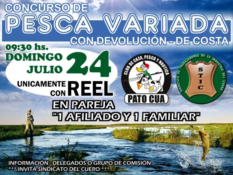 El Sindicato de trabajadores de la Industria del Cuero (STIC), organiza para este domingo 24 de julio un concurso de pesca variada con devolución en las instalaciones del Club Pato Cuá de la ciudad tosquense para todos sus afiliados.