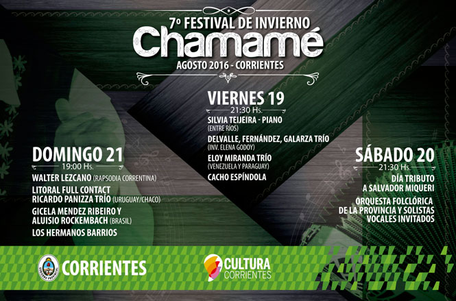 Desde el Instituto de Cultura se dio a conocer la programación del Festival de Invierno de Chamamé, 2016 en su 7ª edición, que se desarrollará desde el viernes 19 al domingo 21 de agosto, en este teatro.