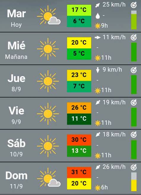 Para el fin de semana se espera buen tiempo, ambiente cálido y húmedo y vientos del sector norte. El mal tiempo volvería el lunes de la próxima semana.