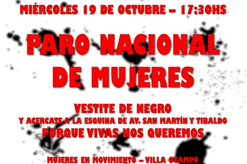 Una convocatoria los femicidios se realizará este miércoles en intersección de calle Tibaldo y Av. San Martín de la ciudad de Villa Ocampo.