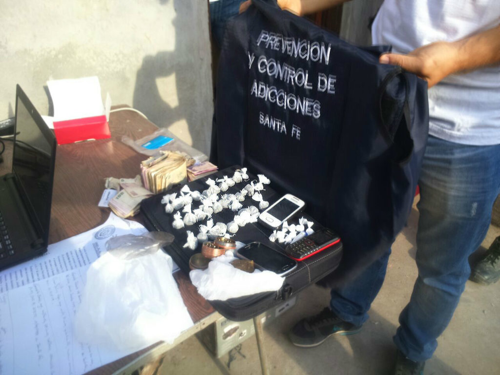El procedimiento fue en Lavalle al 1400, donde secuestraron 29 envoltorios y un trozo compacto con marihuana (unos 70 gramos en total) y otras siete bochitas y un tubo acrílico con cocaína (10 gramos), además de 5.867 pesos en efectivo y otros elementos de interés para la causa.
