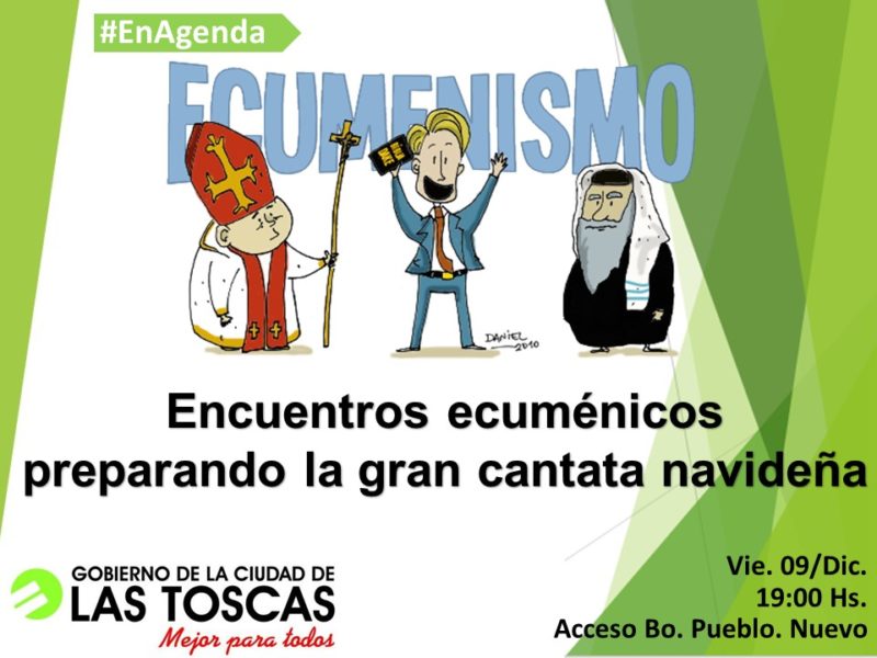 Cultura Las Toscas: se realizará el 2° Encuentro Ecuménico preparando la Cantata Navideña 6 diciembre, 2016 Compartir en Facebook Compartir en Twitter tweet El día viernes se realizará la segunda presentación del Evento Ecuménico preparando la Cantata Navideña que será el día 23 de Diciembre próximo, a las 19:00 Hs. El mismo será frente al Club Tiro Federal LT, acceso a Barrio Pueblo Nuevo.