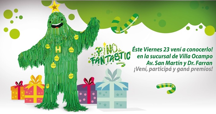 Éste Jueves 22 de Diciembre PINO FANTASTIC estará visitando la sucursal de Avellaneda, San Martin 924 y el Viernes 23 de Diciembre, PINO FANTASTIC va a estar en la sucursal de HABiTAR en Av. San Martín y Dr. Farran.
