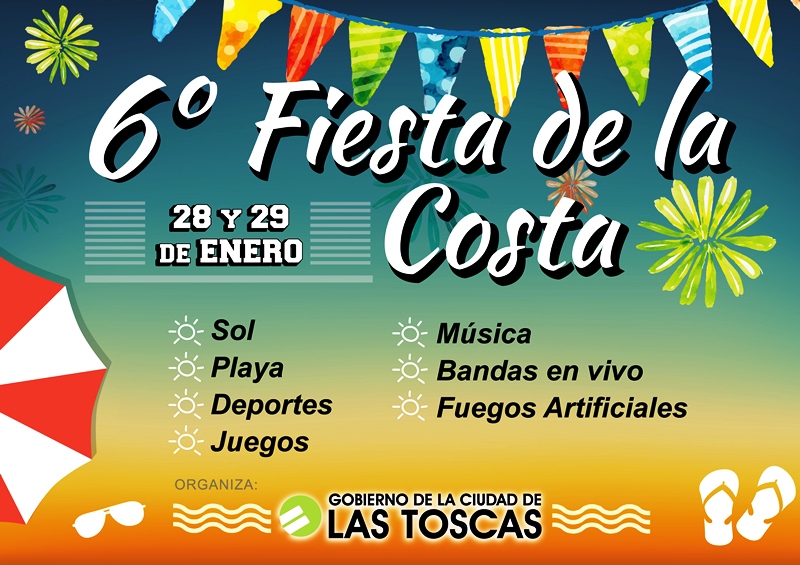 La 6° Fiesta de la Costa, se realizarán los días 28 y 29 de Enero de 2017 en Club Pato Cuá de la ciudad de Las Toscas.