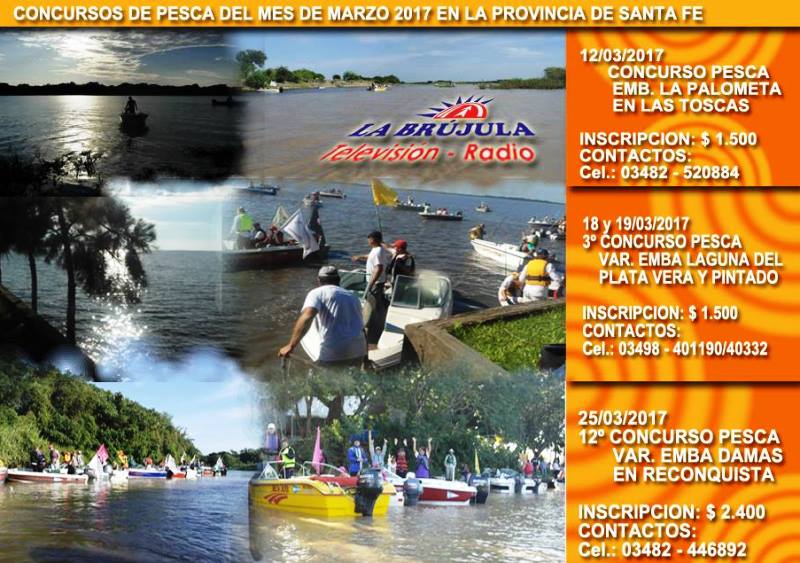 El calendario, se inicia en la localidad de Las Toscas, el 12 de marzo, oportunidad en que se realizará el Concurso de Pesca Embarcada de “La Palometa”, organizado por el Club Pato Cuá, con un costo de Inscripción de $ 1.500.-, que incluye el almuerzo para el trío, entregándose el 40 % de lo recaudado en premios, con un piso de 40 embarcaciones.