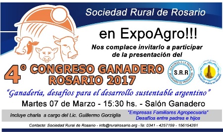 Notas,entrevistas,previas, durante la expo con el expositor y autoridades de la institución, solicitamos concertarla al Sr. Luis Ciucci Prensa Sociedad Rural de Rosario TE: 0341-156411209