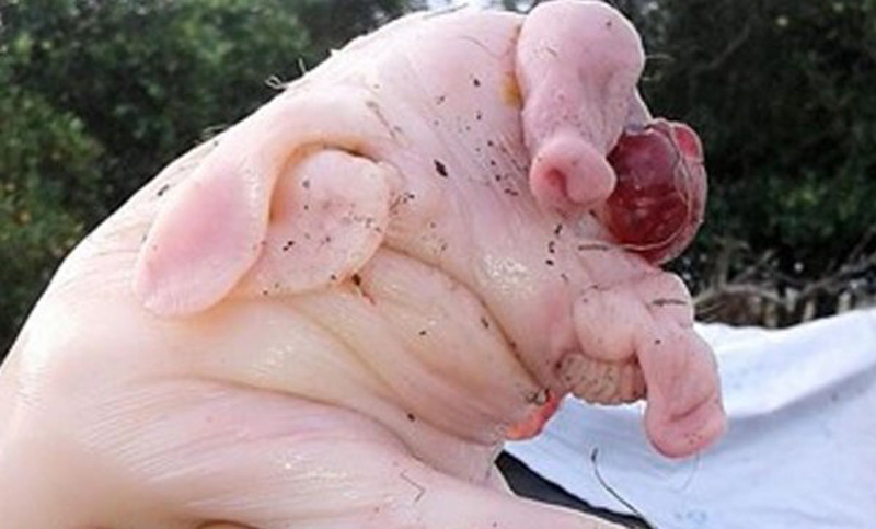 Según informó Nelson Morzán, propietario del animal: “En la tarde del lunes, la chancha parió nueve chanchitos. Uno de ellos – de 1,800 kilogramos – nació muerto. Y lo que más nos llamó la atención es que no tiene pelos, su piel es rosada y lisa, tiene forma de elefante con una trompa larga, no tiene ojos y sobresalen dos colmillos parecidos a los marfiles que ese animal posee” .