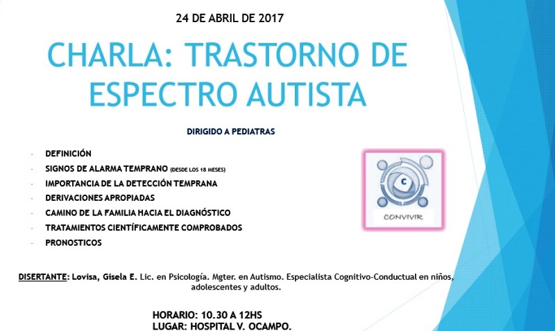 El próximo 24 de abril, en el hospital Samco de Villa Ocampo, se realizará una charla: «Trastorno de espectro autista», dirigidas a médicos pediatrias.