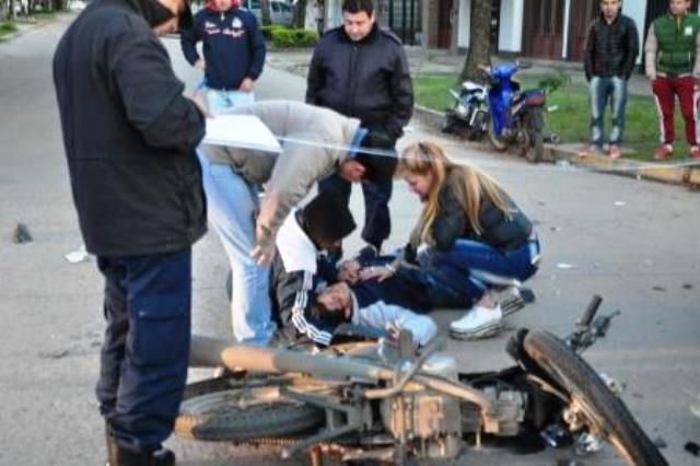 El hecho se produjo cuando la motocicleta conducida por el joven Matías Paredes, de 17 años, se desplazaba de sur a norte por la calle 08 y al llegar a la calle 21, no pudo frenar e impacta la parte delantera de la Pick-Up VW Amarock conducida por un comerciante de apellido García que salía de su negocio ubicado a pocos metros del accidente.