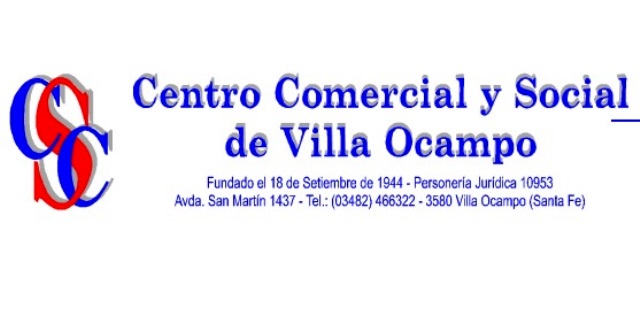 La Comisión Directiva del Centro Comercial y Social de Villa Ocampo, hace llegar por este medio un afectuoso saludo a todos los Comerciantes de Villa Ocampo y zona, al celebrarse este último 10 de julio, el DÍA DEL COMERCIO y DEL COMERCIANTE.