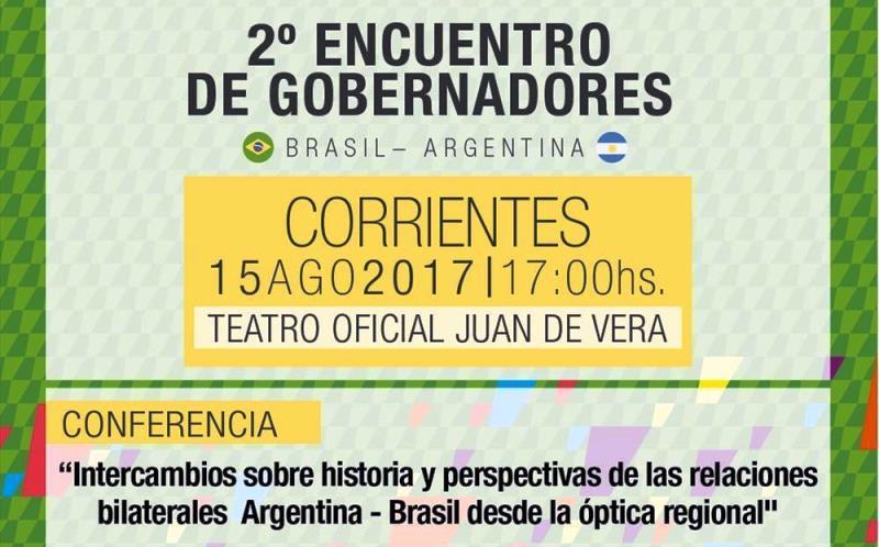 Este martes 15 de agosto se llevará a cabo en la Ciudad de Corrientes el 2° Encuentro de Gobernadores Argentina – Brasil. De este encuentro surgirán importantes avances que contribuirán en la profundización del proceso de integración binacional y de las relaciones entre estados brasileños y provincias argentinas.