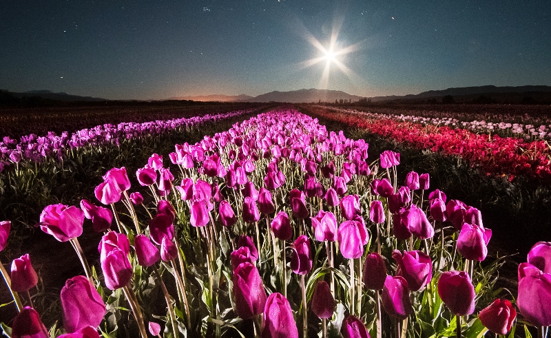 En octubre comienza el ciclo de visitas guiadas nocturnas al campo de tulipanes. Éstas han sido programadas para los días 6, 10, 14, 17, 21, 24 y 28 de octubre y son una innovadora propuesta cuyas salidas se ofrecen desde Esquel y Trevelin. La chacra de cultivo puede ser visitada durante todo el mes de octubre de 8 a 18 hs., pero este año sobresale una propuesta especial para los aficionados de la fotografía, excursiones programadas para conocer y capturar imágenes de esta hermosa plantación durante la noche.