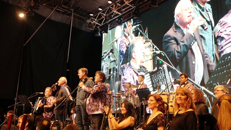 El gobernador Miguel Lisfchitz participó este domingo del show de Los Palmeras junto a la Filarmónica de Santa Fe en el marco del 45º aniversario de la conformación de la banda tropical local.