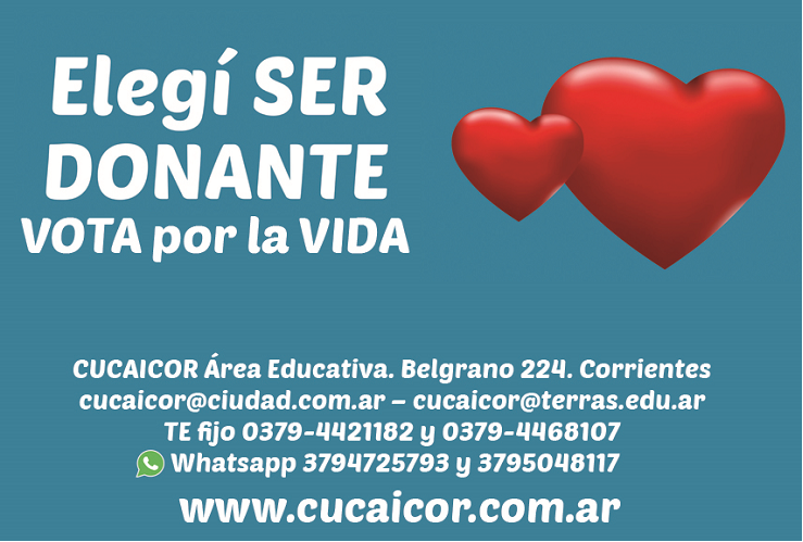 Este domingo 22 de octubre de 2017, en 74 escuelas de Corrientes, capital, y 18 localidades del interior, en la Provincia de Corrientes, se concreta la Campaña Provincial «Elegí Ser Donante.
