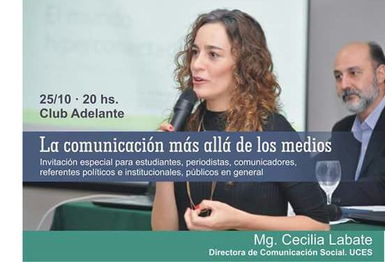Este miércoles 25 a las 20 hs están invitados estudiantes, periodistas, comunicadores, referentes políticos e institucionales, y público en general a participar de la charla sobre comunicación en las organizaciones: «La Comunicación más allá de los medios», a cargo de la Mg. Cecilia Labate.