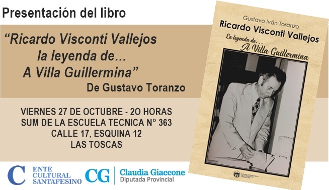 El día viernes 27 de octubre a partir de las 20hs en el SUM de la Escuela Técnica N° 363 (Calle 17, esquina 12) en el marco del Primer Festival de Poesía del Norte Santafesino, se llevará a cabo la presentación del libro «Ricardo Visconti Vallejos la leyenda de… A Villa Guillermina» del autor Gustavo Toranzo.