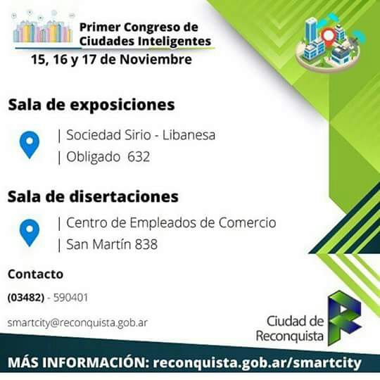 Este 15, 16 y 17 de noviembre se desarrollará el I° Congreso de Ciudades Inteligentes: un encuentro abierto para que gobiernos, industrias, universidades y centros de investigación piensen y debatan los principales desafíos a los que se enfrentan las grandes ciudades, en los nuevos entornos tecnológicos y ambientales.