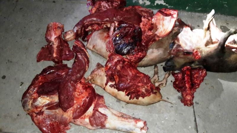 SECCION Nº 20 LA CIGÜEÑA: En Zona Rural, distrito Mogotes sobre Ruta Nacional Nº 98 se diviso un vehículo ocupado por dos Señores mayores de edad. Se realizo requisa en el interior del mismo, previa autorización, donde se observo tres (03) porcinos, dos (02) caprinos todos faenados, partes de un animal vacuno, tres (03) cuchillos y (01) chaira; manifestando uno de ellos que el animal faenado es del campo donde trabaja su hermano, constituidos en ese lugar y entrevistados con el encargado del Establecimiento, el mismo adujo que el faenamiento fue autorizado por su patrón; de consulta con el propietario manifestó no haberlo autorizado; se realizo requisa en el lugar divisando sangre, partes y cuero del animal faenado, por lo que se procedió al secuestro preventivo de todos los elementos descriptos, producto carneo y de un (01) automóvil marca Renault 12 y a los Señores de los notifico del Delito de Abigeato – Faenamiento Clandestino. Interviene UFI de Tostado.-