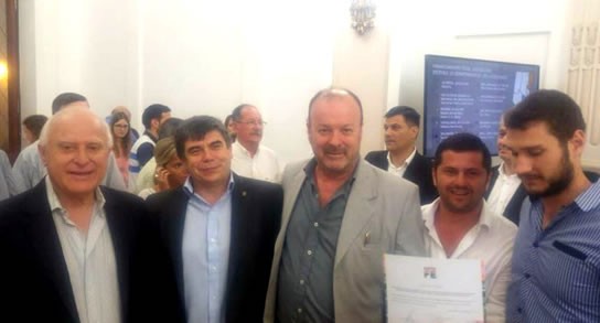 El intendente Enrique Paduán acompañó a los responsables de la empresa local «Corralón 9 de Julio» a la entrega de los certificados a los 42 proyectos seleccionados en las convocatorias 2017 «Innovación Productiva» e «Investigación Aplicada en Pymes» de la Agencia Santafesina de Ciencia, Tecnología e Innovación, que implican una inversión provincial de 36 millones de pesos.