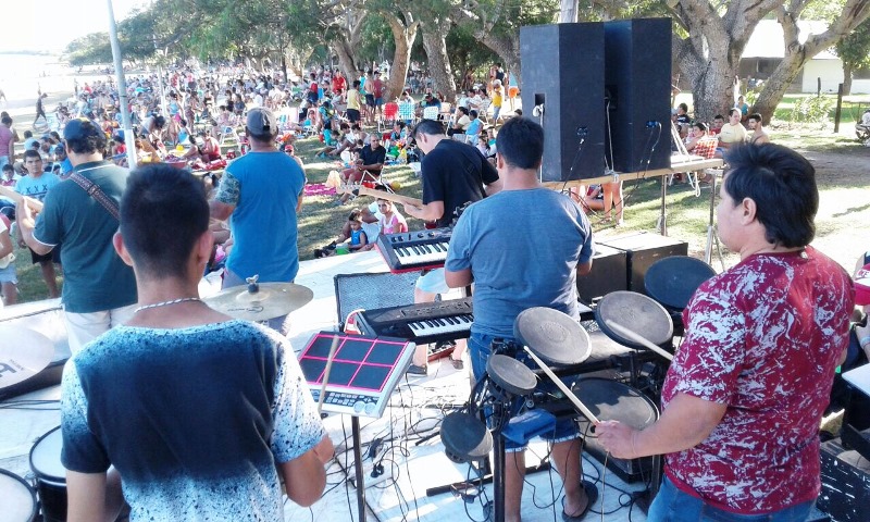Colmada de veraneantes de toda la región y en una tarde ideal para disfrutar de las bellezas naturales que ofrece la playa más linda del Jaaukanigás, actuaron Grupo “Tornado” de Villa Ocampo y “Diego y Su Banda” de Lanteri; con la animación y musicalización de Pascua Sonido.