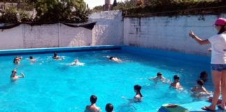 Natatorio del Jockey Club Villa Ocampo en plena actividad