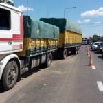 Tras el impacto ambos camiones perdieron gran parte de la carga que quedó desparramada en la cinta asfáltica.