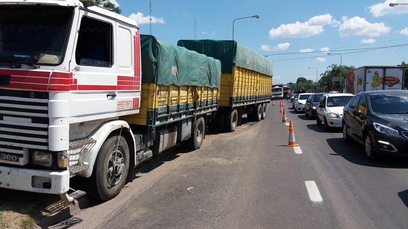 Un camión Scania C113 dominio RXG 506 con acoplado dominio GKU 441 que pertenece a Transporte Zorzon Cesar G. de zona rural La Lola, transitaba por la mano derecha de Avenida Oro Blanco con sentido norte – sur cargado con girasol, por causa que se trata de establecer entre calle 19 y 21 es rozado por un camión Volkswagen dominio MOK 628, acoplado DDJ 959 que pertenece a Transporte y Servicios CJS (Carlos José Soroczan) oriundo de Corrientes Capital, que transitaba con el mismo sentido pero por el carril derecho cargado con girasol.