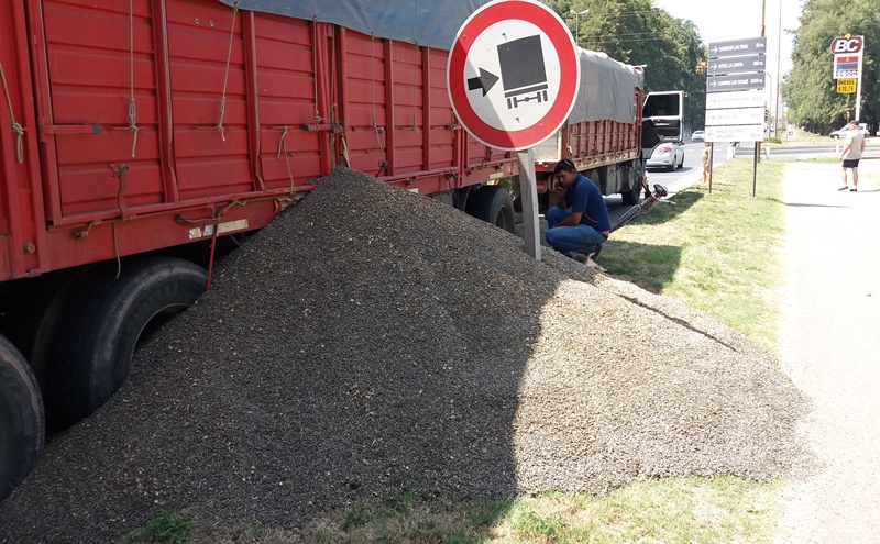 El accidente ocurrió alrededor de las 10 de la mañana de este martes 9 de enero en Avenida Oro Blanco de la ciudad de Avellaneda (sobre ruta nacional 11) donde dos camiones se rozaron y perdieron parte de la carga de girasol que transportaban.