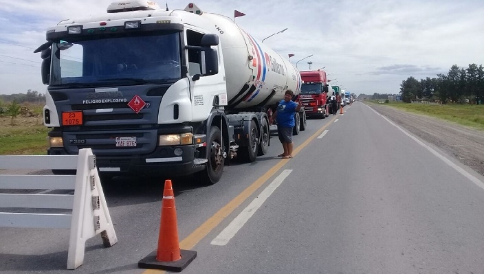 Los camioneros están con sus vehículos al costado de la ruta y piden a sus colegas que paren unos minutos en solidaridad con su reclamo, pero no están cortando la ruta.