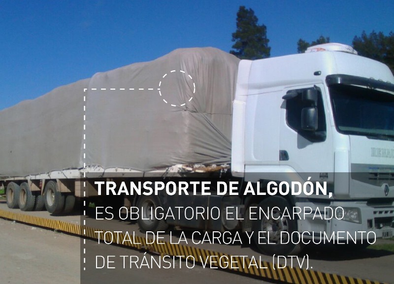 Con el fin de minimizar el riesgo de dispersión del picudo del algodonero, el Ministerio de Agroindustria de la Nación y el Servicio Nacional de Sanidad y Calidad Agroalimentaria (Senasa) recuerdan la obligatoriedad del total encarpado de todo medio que transporte algodón en bruto, fibra, semilla, grano, cascarilla, fibrilla, linter de algodón y/o desechos de desmote de algodón, cualquiera fuera su calidad y modalidad.