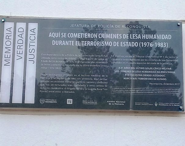El Ministerio de Justicia y Derechos Humanos de Santa Fe a través de la Secretaría de Derechos Humanos y la Dirección Nacional de Sitios de la Memoria llevó a cabo la Señalización del Ex Centro Clandestino de detención en la Unidad Regional IX de Reconquista,