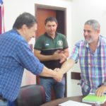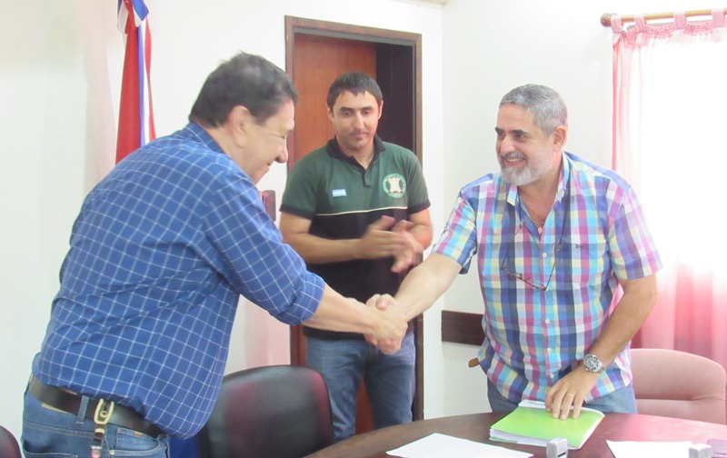 En la mañana de ayer en Sala de Conferencias del Edificio Municipal, el intendente del gobierno de la ciudad de Las Toscas Dr. Leandro Chamorro, acompañado por el Secretario General del STIC Alejandro Delssin, realizaron la firma de contrato y adjudicación de construcción para 5 viviendas en modalidad LMC (Ladrillos de Madera Compacta) con uno de los propietarios de la empresa, el Sr. Gustavo Zamar.