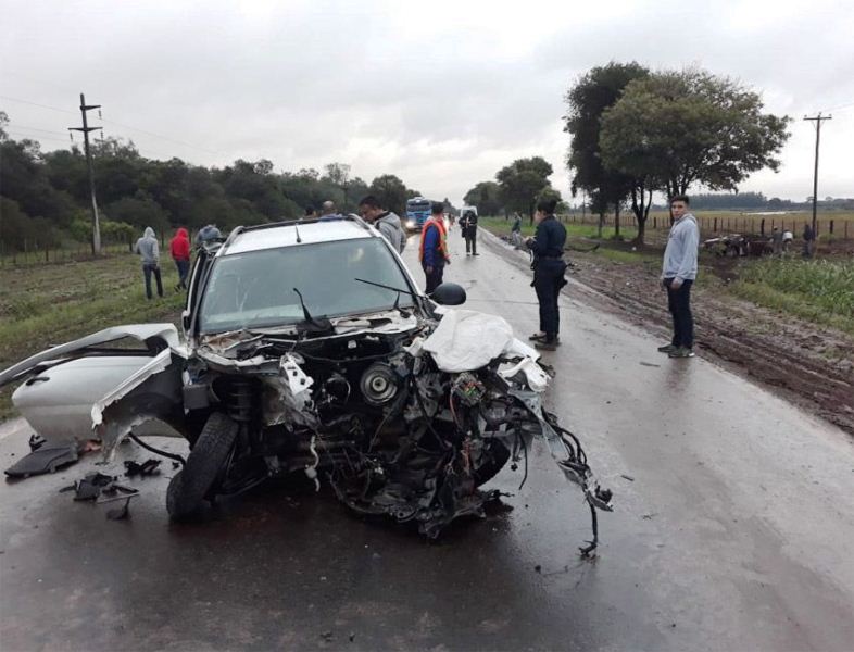 Alrededor de las 17 de este viernes, la policía fue alertada de un formidable accidente ocurrido en la ruta 95, a unos cinco kilómetros de Tres Isletas, entre una camioneta Fiat Strada guiada por un hombre de 55 años, oriundo de Castelli, y un automóvil Volskwagen Vento conducido por un hombre de 53 años, acompañado por una mujer de 33, ambos domiciliados en la localidad santafecina de Villa Ocampo.