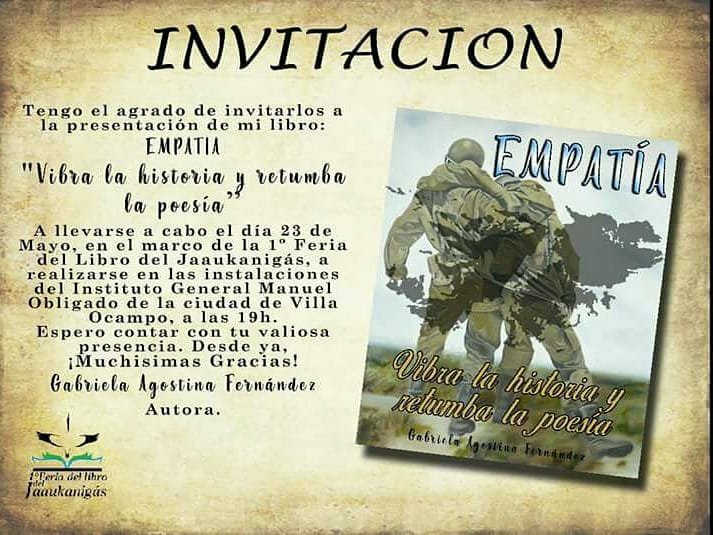 – 19:00 horas: Presentación del libro “Empatía”, a cargo de Gabriela Agostina Fernández.