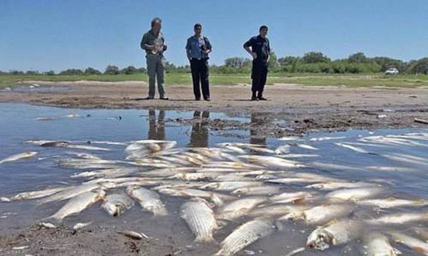 Las mortandades en caso de ocurrir, responden a tres condiciones que están confluyendo en estos momentos: la bajante abrupta del nivel hidrométrico aislando las lagunas interiores del sistema, las