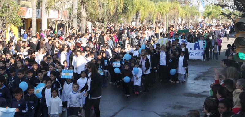 Villa Ocampo: Acto y Desfile Cívico Institucional en Celeste y Blanco