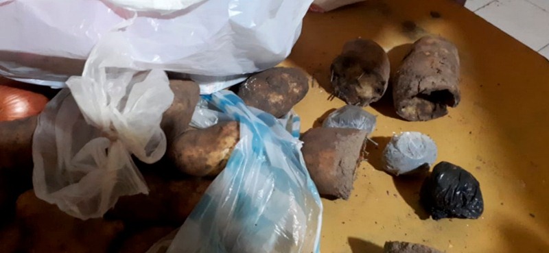 Los envoltorios estaban dentro de papas que habían sido cortadas al medio y reunidas con clavos.