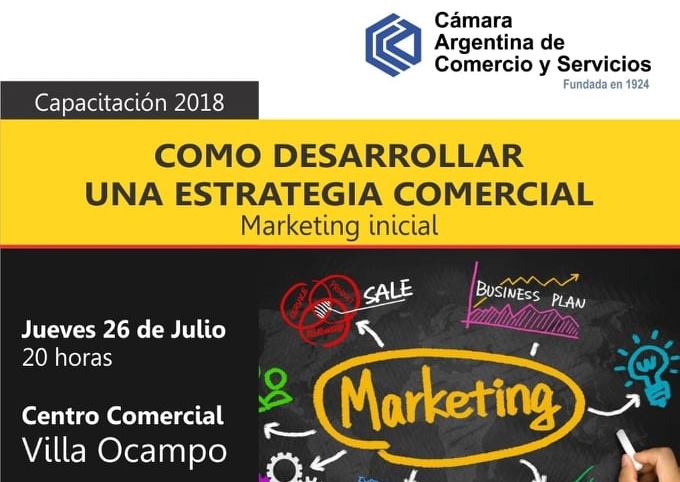 El Centro Comercial y Social de Villa Ocampo invita a una capacitación: «Como desarrollar una estrategia comercial», auspiciado por la Cámara Argentina de Comercio y Servicios, que se llevará a cabo este jueves 26 de julio a las 20 horas en la sede del Centro Comercial de la ciudad.