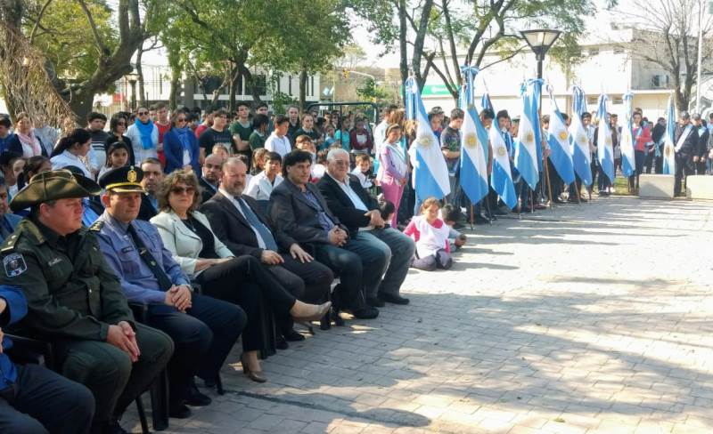 El acto oficial llevado a cabo en la plaza San Martín, contó con la presencia del intendente Enrique Paduán, integrantes de su gabinete municipal, honorable concejo deliberante, instituciones intermedias y público en general.