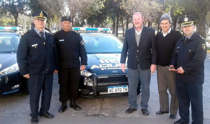 El intendente Enrique Paduán, acompañado por el secretario de Seguridad Ciudadana de la Municipalidad de Villa Ocampo, Robert Cano, participaron en la sede de la Unidad Regional IX de Policía de Reconquista del acto de entrega de nuevas unidades móviles para distintas reparticiones del departamento; entre ellas, una para el Comando Radioeléctrico de nuestra ciudad. Presidió la ceremonia el ministro de Seguridad de la Provincia, Maximiliano Pullaro, junto a las más altas autoridades políticas y policiales de la región.